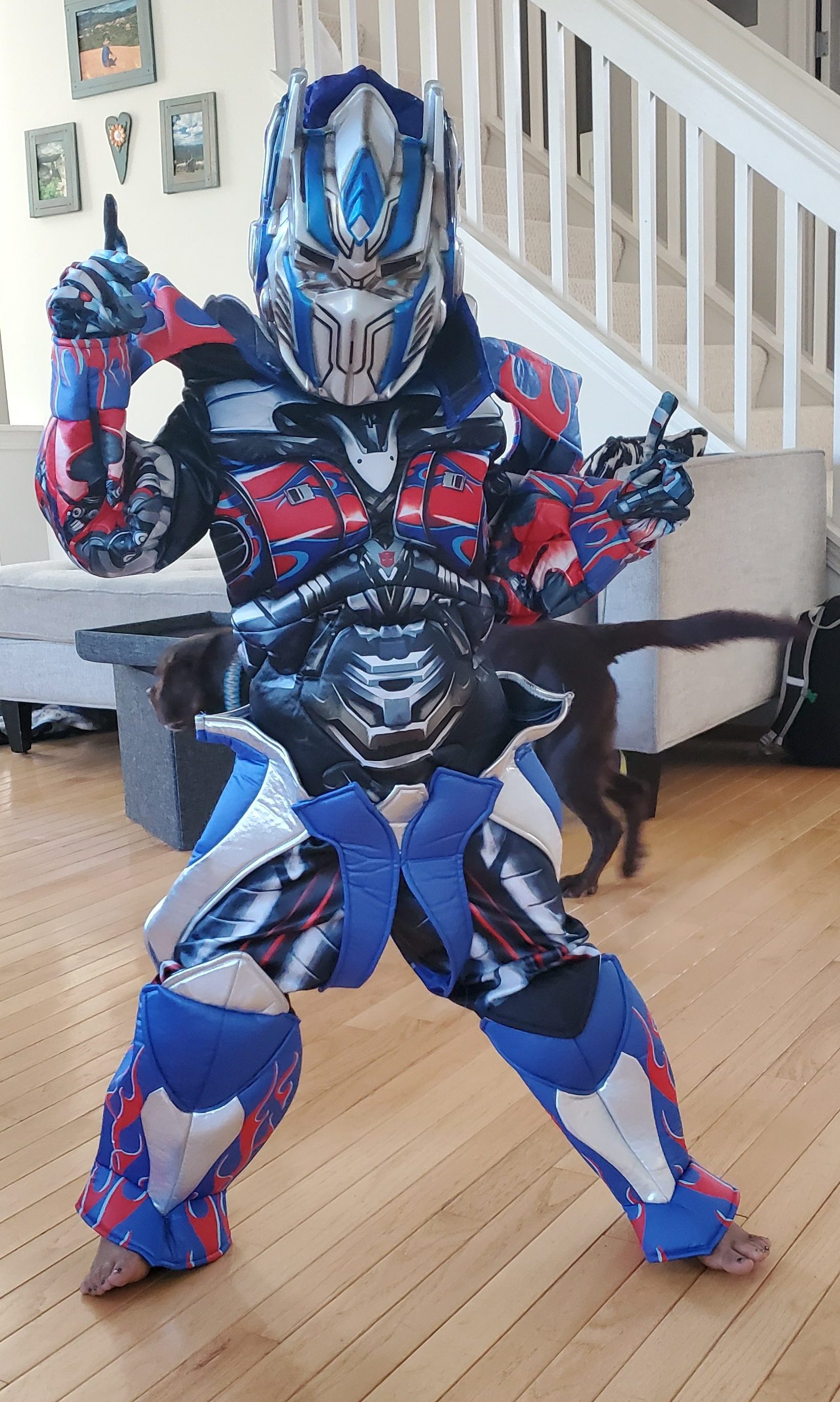 As you can see, his current obsession is with the Transformers. Personally, I miss the Paw Patrol days, as I wasn’t ready to move on. Far too much time, emotion and resources had been dedicated to the show, in terms of characters, toys, apparel etc. One day we were ever so deeply invested in the pups, when suddenly, his dad introduced him to the power of the primes. Since then everything changed. Now, we eat transformers, breath transformers and sleep transformers. Recently, I was told, “Mommy, Optimus Prime is cool, and you’re not”. Okay, kiddo whatever. Does he feed you? Comfort you? Play with you? No. A big resounding no. Anyway, I should know better than to take it too far, with this obsession, it’s just a phase and sooner or later it will be replaced with something else. Or do I? This is us for Halloween. Two Optimus Primes! I went on my own and bought the adult costume for dad, but he insists he’ll be a werewolf instead. So here I am, saving the world with Castor! Gone are the days of trying to look somewhat cute. Never thought, I’d be dressing up as a male super hero for Halloween. Ha.